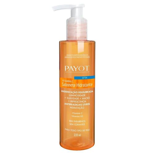 O Sabonete Líquido Payot Detox Vitamina C é ideal para manter a pele limpa e saudável. Sua fórmula com Vitamina B3, colabora para o aumento e permanência da hidratação cutânea. A sinergia entre a vitamina C e o Silício Orgânico promove a hidratação da pele, combate a formação de radicais livres e auxilia na preservação do colágeno. Perfeito para higienizar e desintoxicar a pele, proporcionando uma limpeza equilibrada, sem agredir a camada protetora da pele. Benefícios: - Pele limpa e saudável; - Fórmula vitaminada; - Desintoxica a pele; - Proporciona hidratação cutânea.