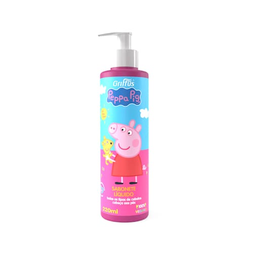 Com o Sabonete Líquido Cabeça aos Pés Peppa Pig Griffus o banho das crianças será ainda mais divertido. Pode ser aplicado da cabeça aos pés. Fórmula suave. *Livre de cloreto de sódio.