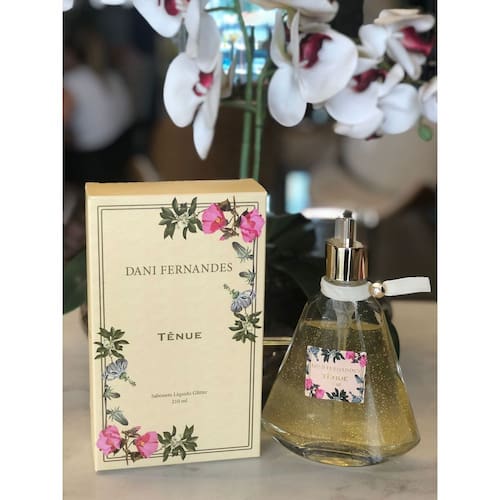 SABONETE LIQUIDO TENUE 210ML O Sabonete Líquido Glitter Tênue da Dani Fernandes não só proporciona uma limpeza suave e macia, mas também adiciona um toque especial à decoração do seu ambiente.