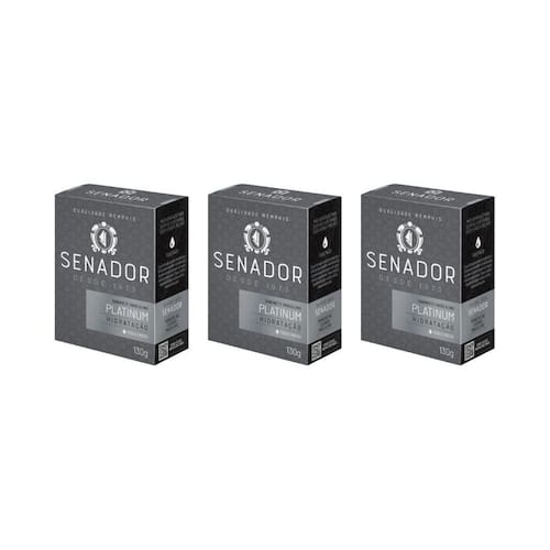 Sabonete senador 130g platinum - kit c/3un Descrição O sabonete senador 130g platinum é a escolha perfeita para homens que buscam um cuidado diário com um toque de sofisticação. Desenvolvido com uma fórmula exclusiva, este sabonete oferece uma limpeza profunda enquanto preserva a hidratação natural da pele, deixando-a macia e bem cuidada. Sua fragrância sofisticada e duradoura, com notas frescas e amadeiradas, proporciona uma sensação de elegância e bem-estar que perdura ao longo do dia. Ideal para todos os tipos de pele, o sabonete senador platinum transforma o banho em um ritual de luxo e cuidado, elevando a experiência diária a um novo patamar. Com 130g, a barra do sabonete senador platinum é generosa, garantindo uma longa duração e uma aplicação suave. Este sabonete é dermatologicamente testado, adequado para o uso diário, proporcionando uma sensação de frescor e limpeza sem ressecar a pele. Sua fragrância exclusiva e fórmula balanceada fazem do sabonete senador platinum uma escolha ideal para homens que desejam combinar eficácia e elegância em seu cuidado pessoal, oferecendo um momento de cuidado que vai além do básico. Modo de uso Molhe o corpo ou as mãos e esfregue o sabonete até formar uma espuma rica e cremosa. Aplique a espuma sobre a pele, massageando suavemente em movimentos circulares para uma limpeza eficaz. Enxágue abundantemente com água morna, garantindo que todo o resíduo de sabonete seja removido da pele. Se necessário, repita a aplicação em áreas que necessitem de uma limpeza mais intensa, como pés e mãos. Após o banho, seque a pele cuidadosamente com uma toalha macia, preservando a hidratação e a fragrância refinada do sabonete senador platinum. Marca: Não Informado