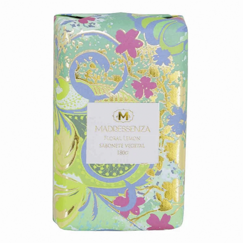 O Sabonete Vegetal Floral Lemon é produzido com glicerina, manteiga de karité e amido vegetal.