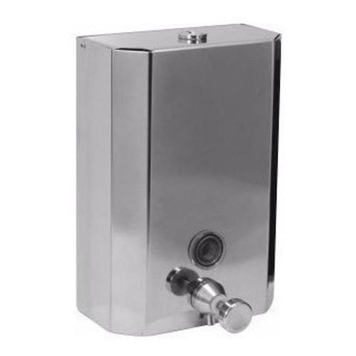 Saboneteira 2 Litros Em Aço Inox 304 Com Fechadura Aboneteira industrial em aço inox com fechadura 2L Produzida em aço inox AISI 304, sistema de válvula em latão cromado, visor cristal transparente, o que permite o controle da substituição do sabonete. Acompanha chave e kit contendo buchas e parafusos para fixação na parede. Disponível nas opções: J16 - Com fechadura J16a - Sem fechadura Capacidade do reservatório: 2L Medidas: 240mm altura x 152mm largura x 130mm profundidade .