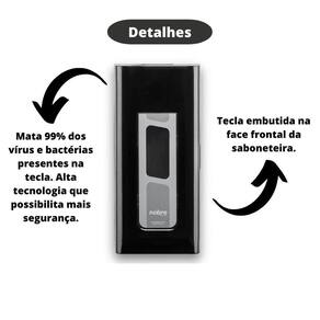 O Dispenser para Sabonete líquido ou álcool em gel é indicado para banheiros, cozinhas ou áreas comuns.Use em consultórios, lojas, escritório, hotéis, recepção e em ambientes onde quiser garantir a higiene e proteção. Acionamento frontal.Tecla embutida na face frontal da saboneteira.A saboneteira possui a parte frontal com a tecnologia protect.Mãos livres de vírus e bactérias. Inovação que proporciona mais benefícios para você.Agente anti-vírus e anti- bactéria com ação vitalícia na tecla.Mata 99% dos vírus e bactérias presentes na tecla. Alta tecnologia que possibilita mais segurança. Medidas: 25.5 cm x 12 cm x 12.6 cm Capacidade em volume: 800 mL