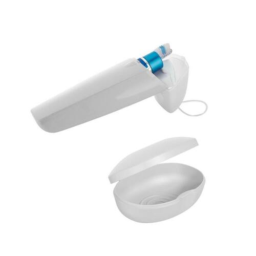 o porta escova de dente dental up é perfeito para auxiliar na higiene pessoal durante o dia a dia. Fácil de transportar, leve sempre com você para qualquer lugar como trabalho, academia e viagens de forma simples e prática. A saboneteira soft é perfeita para auxiliar na higiene pessoal durante o dia a dia. Fácil de transportar, leve sempre com você para qualquer lugar como academia e viagens de forma simples e prática. A linha foi desenvolvida priorizando praticidade no seu dia a dia e cuidado com a higiene, por isso, possui respiradouros para entrada de ar evitando a humidade e trava de segurança para manter escova e pasta de dentes protegidos. Além de possuir alça para facilitar o transporte. O dental up é produzido em plástico atóxico polipropileno e cantos arredondados que facilitam a higienização. No trabalho ou em viagem, o dental up é seu aliado perfeito para auxiliar em vários momentos do seu dia. Cuidados: sugere-se higienizar com sabão neutro e esponja macia, evitando produtos abrasivos no processo de limpeza. Informações técnicas: porta escova de dentes a 4. 5cmx l argura 6. 5cm x p 22cm peso 70g saboneteira soft a 5cmx l 8cmx p 10. 5cm peso 40g