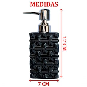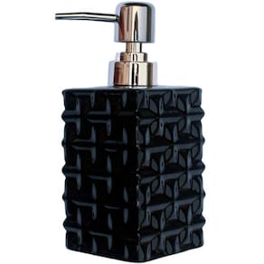 Características Gerais do Produto: - Material: Cerâmica - Modelo: Saboneteira Líquida - Cor: Prata; Preto - Dimensões aproximadas: Altura 17cm X Diâmetro 7cm - Capacidade em litros: 350ml Garantia: - Garantia contra no