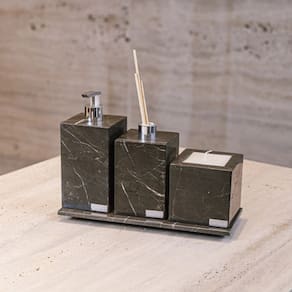 Produzida à mão por talentosos artesãos em Minas Gerais, esta elegante saboneteira é ideal para armazenar sabonete líquido e alcool em gel entre outros líquidos, com sofisticação e originalidade. Cada peça é única devido a uma característica especial: os veios do mármore; sendo uma pedra natural, nenhuma peça tem exatamente o mesmo desenho, tornando os veios do mármore comparáveis a impressões digitais. Essa peculiaridade adiciona um charme exclusivo e faz de cada item uma verdadeira obra de arte.