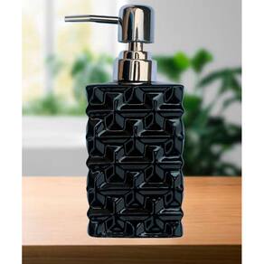 Saboneteira Liquida Lavabo Banheiro Cerâmica Preto De 350ml -