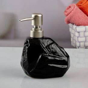 Saboneteira Líquida Lavabo Textura Obsidiana Preto Cerâmica -