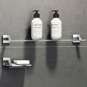 Saboneteira para Banheiro Docol Trip Cromado Saboneiteira com design jovem e atual. Em acrílico com cantos arredondados para maior segurança. A peça possui dois orifícios centrais e uma leve curvatura, por onde a água acumulada com o uso escoa para baixo, não permitindo o acúmulo de resíduos em sua base, facilitando a limpeza. Garantia Toda Vida: qualidade e segurança por tempo indeterminado.