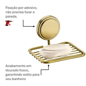 Saboneteira Porta Sabonete de Parede Banheiro com Adesivo Dourado Acetinado