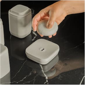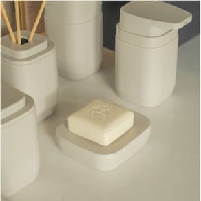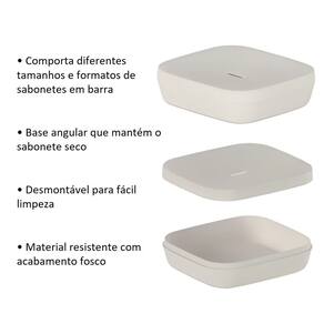 A saboneteira Ou da Linha Aura possui uma base angular que mantém o sabonete seco, evitando acúmulo de água e prolongando a sua durabilidade. Com uma abertura para escoamento e base desmontável, é fácil de limpar, garantindo higiene no uso diário. Seu design minimalista com acabamento fosco valoriza a decoração, transformando o banheiro em um espaço elegante e funcional.