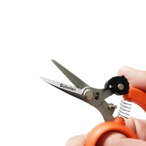 A Tesoura Japonesa Saboten B-2 Para Raleio e Colheita é uma tesoura compacta, desenvolvida para ser utilizada nos dedos, liberando as mãos para outras tarefas como amarrar cordas ou colher frutos enquanto a tesoura ainda está na mão.