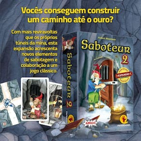 Saboteur 2 é a expansão do consagrado jogo de cartas Saboteur, trazendo novos personagens, times rivais e cartas especiais que aumentam a tensão, o blefe e a diversão das partidas. Ideal para quem quer turbinar o jogo base com mais estratégias, reviravoltas e surpresas