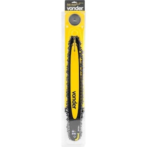 Marca: VonderConteúdo da Embalagem:1 Sabre com corrente e coroaDestaques e diferenciais:Sabre completo, acompanha corrente e coroa. A corrente semiquadrada é a melhor combinação de velocidade e durabilidade.Aplicações e dicas de uso:Indicado para motosserra, para cortes de madeira em geral.Características Técnicas:Comprimento do sabre: 22'' - 55,9 cm Calibre do sabre: 1,5 mm - 0.058 Tipo de dente da corrente: A2EP - semiquadrada Passo da corrente.: 3/8 0.375 Cálibre da corrente.: 0.058 - 1,5 mm Ean: 7893946671792