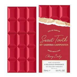 O Sabrina Carpenter Sweet Tooth Cherry Baby Eau de Parfum - Perfume Feminino 75ml é uma fragrância flirty e viciante da marca Sabrina Carpenter, lançada em 2024 como a terceira da coleção Sweet Tooth com Scent Beauty. Inspirada em uma mistura sedutora de cereja e chocolate, esta fragrância ambar frutado gourmand evoca um aroma indulgente e provocativo, equilibrando sofisticação e doçura. Ideal para mulheres que buscam um perfume doce e marcante, é perfeito para ocasiões especiais. O frasco de 75ml, com design em forma de barra de chocolate rosa, é elegante e reflete o estilo artístico da marca.
