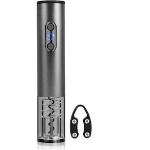 Modo de usar: - Coloque o abridor elétrico de vinho em cima da garrafa, certificando-se de que ele permaneça o mais reto possível. - Segure o abridor elétrico de vinho firmimente e pressiione o botão inferior. O saca-rolha girará no sentido anti-horário, removendo gradualmente a rolha da garrafa. - Levante o abridor elétrico de vinho tirando-o da garrafa. Para remover a rolha, pressione o botão superior. A espiral girará no sentido horário liberando a rolha. - Para carregar o aparelho, insira as pilhas recarregáveis e plugue o cabo USB em um carregador comum.