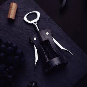 O produto é confeccionado com corpo em ABS (plástico de alta resistência), hastes e abridor em zamak (liga metálica robusta) e espiral de aço inoxidável com revestimento antiaderente, facilitando a remoção da rolha..