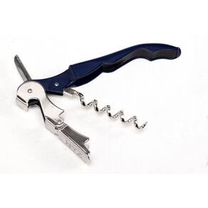 Saca rolhas dois estágios em aço inoxidável. Compacto e eficiente. Modelo tradicional, design moderno, de fácil utilização e alta durabilidade. Ideal também para abrir garrafas com tampa de cerveja. Dimensões: 12 x 3 x 1,5cm AxLxP Peso: 70g Cor: Azul