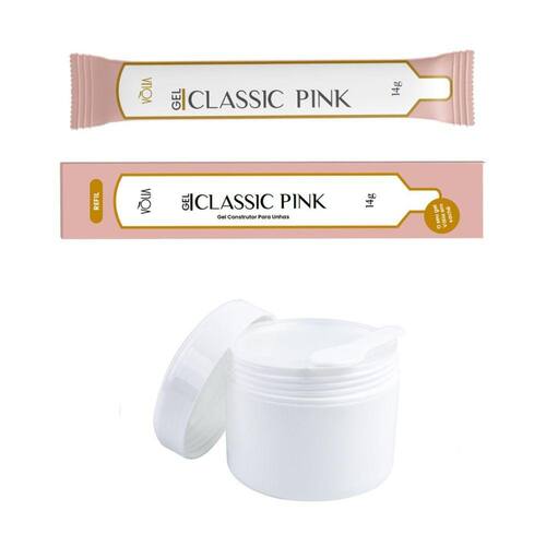 Contém: 01 - Gel Sachê Classic Pink Refil Unhas Alongamento LED/UV 14g, Vòlia 01 - Pote Branco com tampa 01 - Vedação encaixável antes da tampa 01 - Colher Plástica que pode ser armazenada por cima da vedação