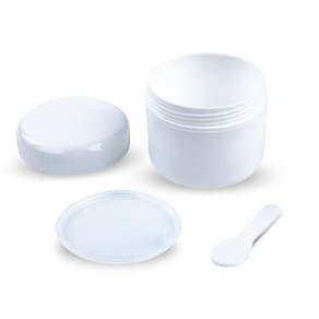 Características principais pote: - prático para atendimentos; - fácil de limpar; - muito utilizado por manicures para o armazenamento de sachês refil; - possui colher e uma segunda tampa; - embalagem econômica, sem desperdícios; - pote branco.