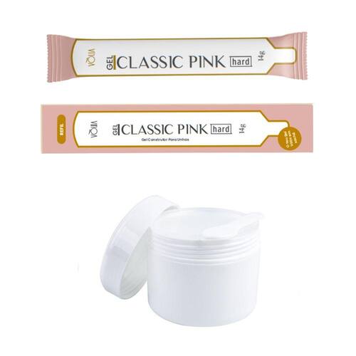 Contém: 01 - Gel Sachê Refil Classic Pink Hard Unhas Alongamento LED/UV 14g, Vòlia 01 - Pote Branco com tampa 01 - Vedação encaixável antes da tampa 01 - Colher Plástica que pode ser armazenada por cima da vedação
