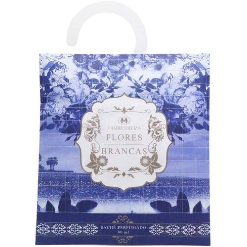 Concebido na coleção Flores Brancas da Madressenza, o Sachê Flores Brancas é apresentada em um papel macio com desenhos de azulejos portugueses de flores.