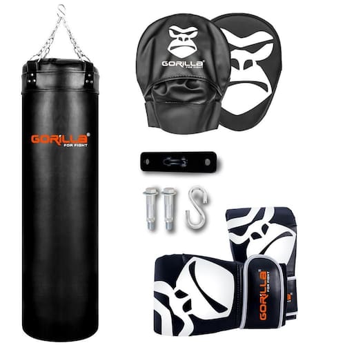 Saco 120 Cm + Luva PRO + Manopla + Suporte Teto Kit Completo Cor: preto O kit acompanha: 01 Saco de Pancadas 120x100 Gorilla 01 Luva Bate Saco Pro Par Gorilla 01 Suporte De Teto Retangular 01 Manopla de Foco Par Gorilla. Saco De Pancada Gorilla Profissional 120x100 - Gorilla. ideal para treinos de atletas profissionais e amadores, indicado para aplicação de chutes e socos altos cabeça médios peitoral . Confeccionado em policloreto de alta resistência, o saco de boxe possuí 120 cm de altura por 100 cm de circunferência O tamanho total contando desde o fundo do produto até o término da alça fica em aproximadamente 135 cm de altura . Quatro pontas de apoio reforçadas com dupla camada de PU acompanhadas com argolas, correntes e um exclusivo gancho em S, pronto para pendurá-lo O saco de pancada é enviado VAZIO e possuí um zíper na parte superior facilitando o enchimento. Especificações: Medidas: 120 cm de altura x 100 cm de circunferência; Produto enviado VAZIO; Peso suportado: até 70 kg; Materiais indicados para o enchimento: Retalhos: Em confecções geralmente fornecem de graça ou são vendidas por quilo por um preço bem acessível . Estopas: Autopeças e lojas especializadas são vendidas por quilo por um preço bem acessível . Raspas de borracha: Empresas de recapeamento de pneus. Serragem: Encontrada em marcenarias e empresas que produzem esquadrias de madeira também fornecem de graça ou são vendidas por quilo por um preço bem acessível . Luva Bate-Saco PRO - Gorilla Desenvolvida para conforto e proteção necessária ao atleta. A Luva Bate-Saco PRO Gorilla é fabricada em PU flexível com proteção acrílica-vinílica aumentando as propriedades de resistência e facilitando a higienização do produto. Ela é revestida com duas camadas de diferentes densidades dando maior conforto para o atleta. Possuí o fecho no punho em tiras aderentes facilitando a colocação e proporcionando um melhor ajuste a diferentes tamanhos de pulsos. Abertura no dedão; Indicações: Ideal para treinos em sacos de pancadas, manoplas e aparadores. Acompanham o produto: 01 luva bate-saco par Suporte De Teto Retangular Para Saco De Pancada - Gorilla Suporta sacos de pancada de todos os tamanhos, até 150 kg. Ele acompanha dois parabotls. Diferente dos parafusos comuns os parabolts possuem maior fixação pois eles funcionam como chumbadores dando toda segurança que o atleta necessita. Fabricado com aço de alta qualidade o suporte para saco de pancada é zincado não enferruja , sua pintura é feita com a tecnologia eletrostática. Possui 2 pontos de fixação para prender firmemente o suporte ao teto; Indicações: Para sacos de pancadas até 240 kg; Acompanham o produto: 01 Mosquetão com trava 02 Parabolts tamanho: Adulto Manopla De Foco - Boxe - Muay-thai - Gorilla A Manopla De Foco tem seu formato anatômico proporcionando maior precisão no deferimento dos socos. Ele é fabricado em PU projetado para receber muita porrada sem desgastar. Preenchido com duas camadas de diferentes densidades proporcionando proteção ao atleta. Sua costura foi aprimorada com uma linha especial para a categoria dando maior segurança em seu treino além de prolongar a vida útil do produto. Preenchimento: Espuma alta densidade; EVA; Indicações: Treino de velocidade, potência e precisão : 09 meses Fabricado por Gorilla Indústria e Comércio LTDA. Produto 100% nacional. Marca: Não Informado