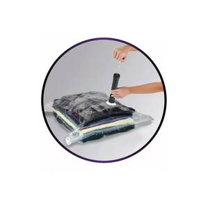 Falta espaço para guardar todas as suas roupas na mala ou no armário? A organizadora à vácuo é perfeita para guardar seus pertences ocupando até 3x menos espaço do que o normal.