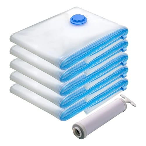Inclui: 5 sacos à vácuo de 50 x 60 cm 1 Bomba Plástica.