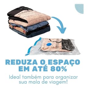 É a solução ideal para quem busca armazenar e organizar roupas de forma fácil, rápida e inteligente. Reutilizável, impermeável e prático. Protege contra: Umidade, mofo, odores, insetos, poeira e sujeira. Possui um sistema de vácuo que permite triplicar o espaço de armazenamento. Comprime, Protege e Organiza: edredons, travesseiros, cobertores, colchas, casacos, roupas de cama, roupa de inverno, roupa de banho, vestidos de festa e objetos em geral. Produzido em polietileno, transparente, que facilita a visualização do que há em seu interior. Marca: Não Informado