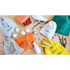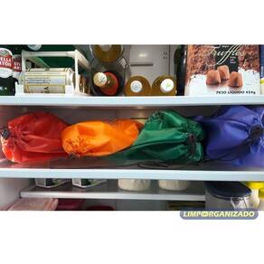 Sacola reutilizável projetada para armazenar legumes como pepino, cenouras, chuchu e abobrinha, enquanto mantém o ar e umidade fora. Basta deslizar o cordão para fechar e guardar na geladeira.