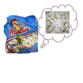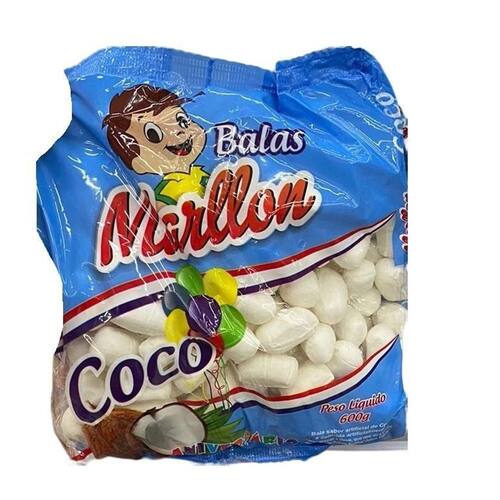 Sabor: Coco Marca: Balas Marllon Tamanho: 600 gramas aproximadamente 50 balinhas Ingredientes: Água, açúcar, Leite de coco, Leite condensado e Nesquik