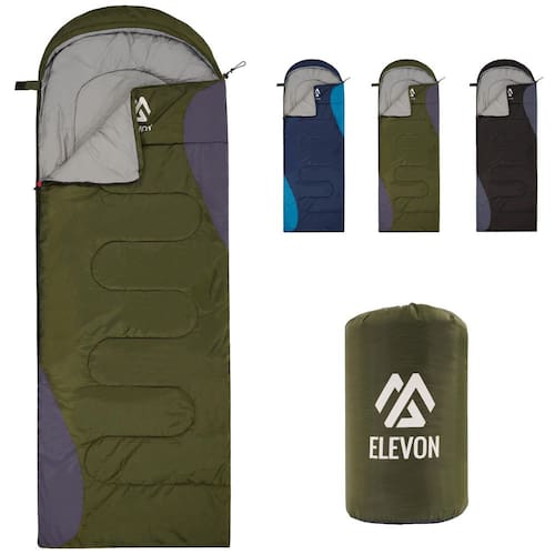 Saco de dormir Elevon para adultos, adolescentes, crianças, climas frios e quentes, portátil, impermeável e leve, compacto com saco de compressão, para 3 a 4 temporadas de acampamento, mochilão, caminhadas, viagens, ambientes fechados e ao ar livre