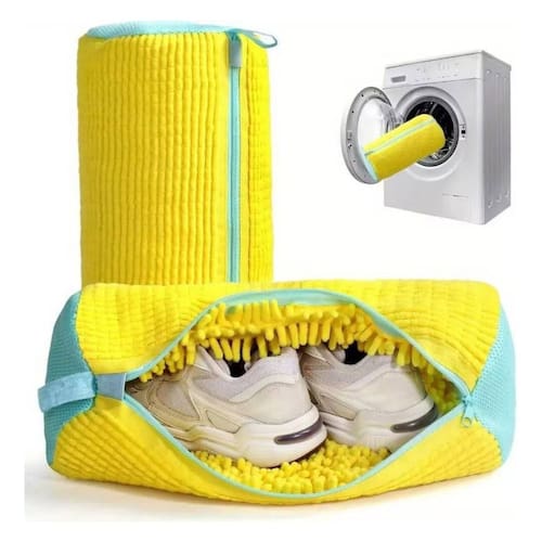 Praticidade: é só colocar o calçado dentro, fechar e levar à lavadora.