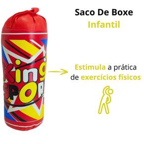 Saco de pancadas boxe infantil com luvas esporte wb7955 Estampa: king Tamanho: un Transforme a brincadeira em diversão saudável este kit de boxe é perfeito para crianças gastarem energia, desenvolverem coordenação motora e se exercitarem de forma divertida. Conta com 1 saco de boxe e 1 par de luvas, ideal para crianças acima de 03 anos, seu material leve, seguro e resiste, pode ser pendurado em qualquer local de fácil acesso para as crianças, além de ser uma excelente opção de presente para as crianças, o seu designer colorido chama atenção e torna a brincadeira ainda mais agradável. Garanta já o seu e proporcione momentos de lazer e atividade física para os pequenos Por que comprar com a imports - enviamos em até 24 horas; - produto de ótima qualidade; - produto testado e muito bem embalado para chegar em perfeito estado; - foco total no cliente. Informações importantes: - modelo: saco de boxe infantil com luvas - material: plástico pvc + further - medidas: Saco - 35x12 cm Luvas - 19x17x9 cm - material leve e resistente - fácil de pendurar - estimula a prática de exercícios físicos - recomendado para crianças acima de 03 anos - registro inmetro: 003292/2024 Marca: Não Informado Ean: 7895929440326
