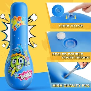 Saco de pancadas para crianças, 153 cm, saco de pancadas inflável para crianças de 3 a 12 anos, saco de pancadas com conjunto de ação para praticar karatê, taekwondo - Presentes de brinquedo para crianças – Celebre qualquer ocasião com nosso brinquedo pop-up de 160 cm! É uma escolha popular para crianças durante aniversários, Natal e Ação de Graças durante todo o ano. - Materiais de qualidade premium – Feito de PVC durável e de alta qualidade, este brinquedo resiste a brincadeiras intensas - incluindo socos e chutes - para garantir diversão e treinamento duradouros. - Versátil e divertido – perfeito para brincadeiras internas e externas, as crianças podem chutar, socar e rolar para entretenimento sem fim. Ajude-os a ficar longe das telas, praticar atividade física e levar um estilo de vida mais saudável. Também é uma ótima decoração de festa de aniversário ou presente! - Design estabilizador e reativo – A parte inferior ponderada garante que o alvo reaja aos impactos e melhore a experiência de jogo. Melhor uso: - Encha com pelo menos 2,5 kg de água para estabilização (areia não é recomendada, pois pode ser difícil de limpar). - Use a bomba de ar para inflar. - Depois de jogar, drene a água pela saída, dobre e guarde para o próximo uso. - Excelente cuidado e satisfação – Priorizamos a segurança e a satisfação do cliente. Se nossos produtos não atenderem às suas expectativas, . Estamos comprometidos em garantir que sua família se divirta sempre que você jogar.