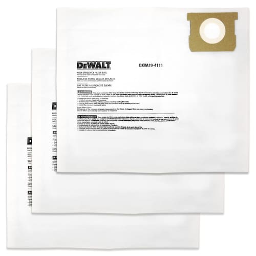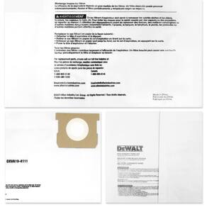 DEWALT Saco de pó fino DEWALT 6 10 galhas - Compatibilidade: a bolsa de filtro é compatível com DXV06P DXV09P DXV09PA DXV10P DXV10PL DXV10S DXV10SA DXV10SB - ALTA QUALIDADE: Feito de material de alta eficiência para coletar a maioria das pequenas partículas e poeira fina - Reduz o tempo de limpeza: o saco de vácuo torna o descarte de poeira rápido e fácil, economiza tempo para limpar o aspirador - Fácil de usar: desdobre a bolsa e coloque o selo de borracha e o papelão na posição certa - O que você recebe: Pacote com 3 sacos de filtro finos DXVA19-4111