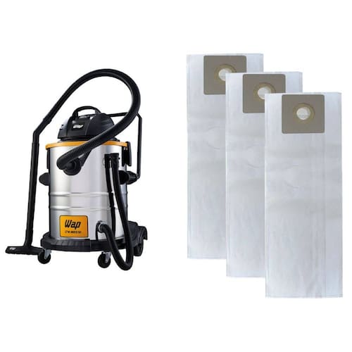 Sacos descartáveis e biodegradáveis para aspirador de pó, com finalidade de armazenar sujeira e pó. Higiênicos e desenvolvidos para proteger o motor e manter a parte interna do aspirador limpa. Evita que a poeira escape e danifique o motor. Embalagem contendo 3 (três) sacos descartáveis.Compatível aos modelos: WAP GTW INOX 50. Fácil instalação e descarte. Marca: Não Informado