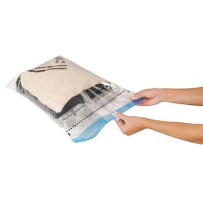 Vac bag é a solução ideal para quem busca armazenar e organizar objetos. De forma fácil, rápida e inteligente, reduz o volume dos objetos em até 2 vezes, protegendo contra traças, insetos, mofo, poeira, sujeira, odores e umidades.