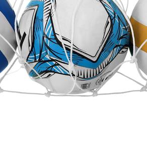Espessura do Fio: 2mm; Malhas: 10 x 10cm; Capacidade: 5 bolas de futebol de campo; Cor: Branco.