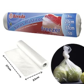 Mantenha seus alimentos frescos e organizados com nossos sacos plásticos para freezer e geladeira. Ideais para conservação de alimentos, estes sacos transparentes oferecem praticidade e durabilidade para o seu dia a dia na cozinha.