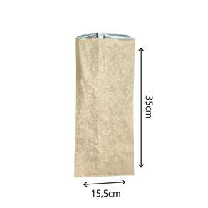 Gramatura: 60g total, 35g de papel kraft, e 25g de papel laminado.