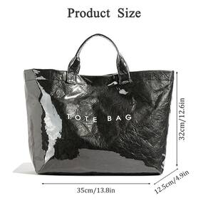 Especificações: Origem: China continental Forma: Satchels Material principal: poliéster Tipo de bolsas: bolsas de ombro Material do forro: poliéster Produto químico em questão: nenhuma Observação: Devido a diferentes configurações de monitor e condições de iluminação, a cor real do item pode variar ligeiramente das imagens. Obrigado pela sua compreensão! Considere uma diferença de 1 a 2 cm nas medidas devido à medição manual. - ?Bolsa moderna ?A sacola possui um interior de papel kraft e poliéster com uma textura única que melhora sua qualidade. O exterior é feito de material de PVC, oferecendo um desempenho brilhante e à prova d'água - ?Bolsa grande para mulheres?Medindo 33,5 x 14,5 x 30 cm (C x L x A), as sacolas de PVC têm uma estrutura simples para facilitar a organização e acesso, atendem às necessidades diárias de trabalho e compras - Leve para comprar: papel kraft com superfície de PVC, a bolsa grande é leve, impermeável e fácil de limpar. Letras impressas e uma variedade de cores modernas para atender às necessidades individuais - Fecho de fecho aderente?A bolsa transparente possui um conveniente fecho de fecho aderente (fecho aderente) para acesso rápido - Não é apenas a sacola: a sacola feminina não apenas atende às necessidades de compras, trabalho, universidade, passeios diários e viagens pela cidade, mas também é uma escolha atenciosa para amigos e familiares em aniversários e festivais