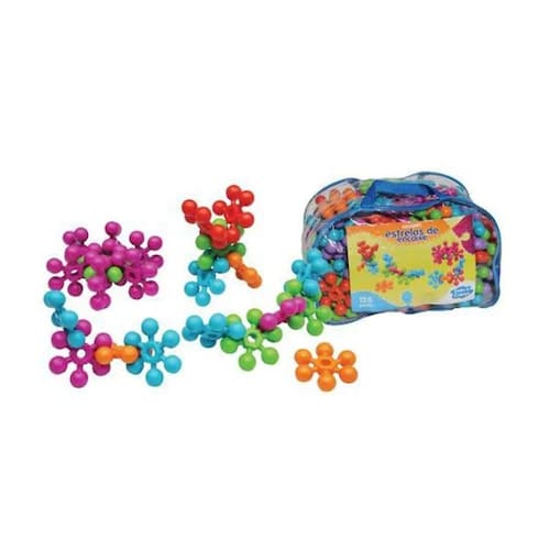 Conjunto confeccionado em plástico polipropileno atóxico de alto brilho, de cores vivas, contendo 125 peças, no formato estrela com seis pontas arredondadas. Acondicionado em sacola de PVC cristal transparente, com bordas em vivo brilhante e alça. Produto de qualidade comprovada. Educativos e pedagógicos.