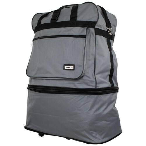 Sacola de viagem Expansível 3 Níveis Mala De Com 6 Rodinhas Grande Cor: Cinza Tamanho: Único Genero: Unissex Sacola Viagem Dobrável com Rodas -YS23009 Bolsa Sacola Mala Viagem com 6 Rodas com giro 360 que facilita o transporte, Expansiva 3x1 tem amplo espaço interno quando expandida, sendo ideal para o transporte e armazenagem de grande quantidade de objetos. Produzida em Poliéster, a sacola de viagem possui alça de mão em toda a sua extensão, além de possuir alça de ombro removível e com regulagem, o que facilita o seu transporte e equilíbrio do peso, possui também 1 bolso externo fechamento em zíper. Mala reforçada com acabamento excelente, materiais de ótima qualidade, base com rodinhas para facilitar o transporte e manuseio Características: -tamanho: Grande G - Material: Poliéster - Rodinhas inclusas: sim; Dimensões Aproximadas: Altura: Nível 1 - 47 cm fechada Nível 2 - 73 cm Nível 3 - 1 metro