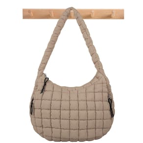 Sacola acolchoada acolchoada, grande bolsa de ombro tiracolo com zíper, bolsas Bubble Hobo de nylon, bolsa de viagem com alça superior para mulheres, bolsa acolchoada acolchoada grande e macia (cáqui, grande)