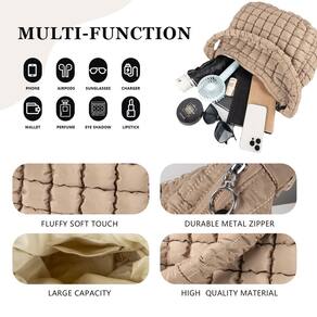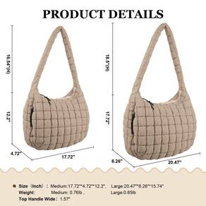 -?Sacola acolchoada grande?Sacola acolchoada com tamanho 17,7" × 15" × 7,8". O tamanho perfeito acomoda facilmente seus cosméticos, smartphones, laptop, óculos de sol, guarda-chuva, carteiras e necessidades diárias. Adequado para caminhadas, compras, namoro, fitness, trabalho, viagens e uso diário.