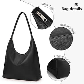 KALIDI Bolsa casual de couro vegano Hobo com zíper bolsa de trabalho de ombro para mulheres bolsa de ombro para viagem, Preto - Grande capacidade: bolso principal grande com fecho de zíper muito espaço para manter as coisas para uso frequente, protesto que suas coisas caiam sem fechar. Fácil de embalar suas necessidades de trabalho, como iPad, documentos e amostras. - Vários bolsos: 1 bolso interno com zíper protege objetos de valor, 2 bolsos diagonais para guardar objetos pequenos. 1 bolso traseiro com zíper para alcançar rapidamente. Todos esses bolsos tornam a organização fácil e prática. - Design atualizado: feita de couro vegano macio com textura de lichia, não dobra nem vincos. Testada contra arranhões e evita respingos de água. Limpe facilmente a sujeira da superfície com um pano úmido. Garanta maior vida útil e uso durável. - PERSPECTIVA CLÁSSICA: A cor de couro sintético combina facilmente com roupas do dia a dia ou looks de fim de semana, pode ser casual e também profashional, fazendo você se destacar em todas as ocasiões. - Uso versátil – alça de ombro de 2,5 cm de largura, reduz a carga nos ombros. Uso confortável para trabalho, compras, encontros e férias.