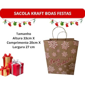 A Sacola Kraft Boas Festas é perfeita para embalar seus presentes de Natal com muito estilo e charme. Feita em papel 100% kraft, é ecologicamente correto e possui uma estampa muito bonita que valoriza o produto.