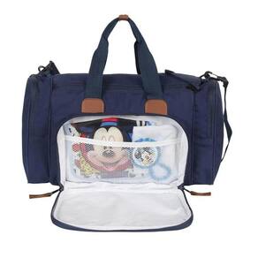 Características: contém bolso frontal, 2 bolsos térmicos e laterais. Outras características: contém trocador Material: poliéster Dimensão: 32 x 44 x 12 cm A x L x C Estampa: Mickey Azul.